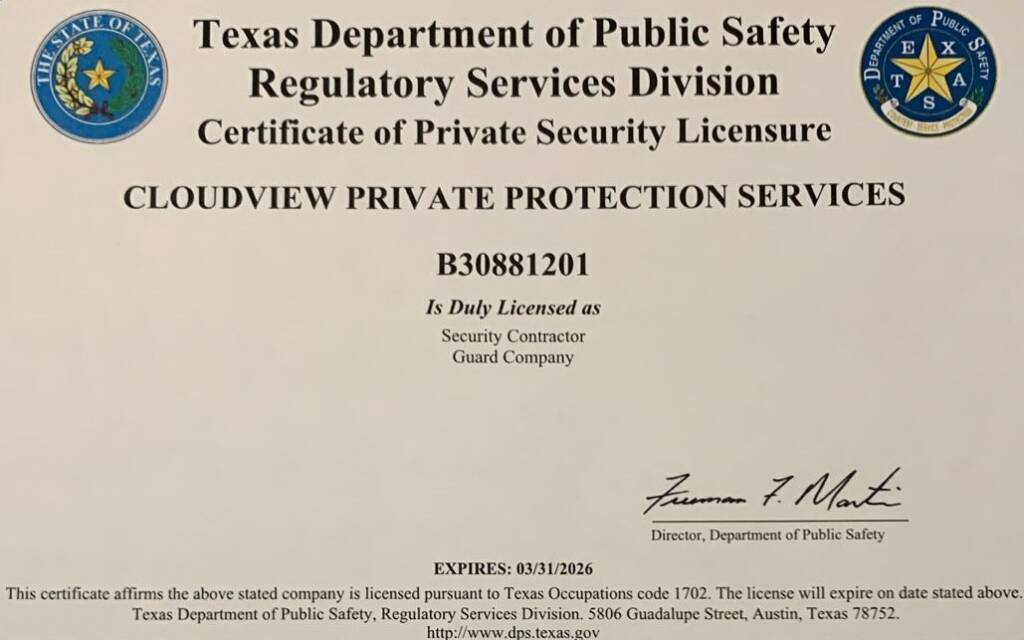 “Cloudview Private Protection provides exceptional security services. Their professionalism, reliability, and dedication ensure peace of mind for all clients.”